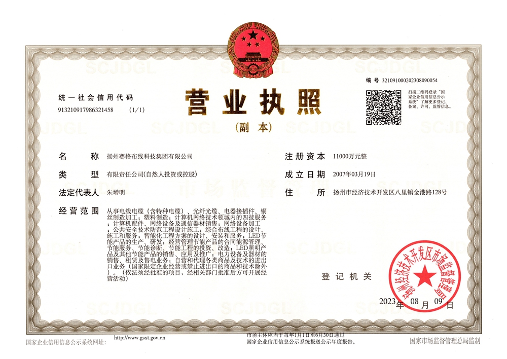 揚(yáng)州賽格布線科技集團(tuán)有限公司位于“淮左名都,竹西佳處”的歷史文化名城—揚(yáng)州,地處江蘇中部、長江下游北岸、江淮平原南端,京杭大運(yùn)河貫穿南北。地理環(huán)境優(yōu)越,交通樞紐便利。公司致力于綜合布線、電線電纜、電子線纜的研發(fā)與制造。