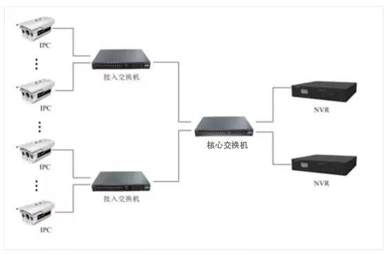 如采用200萬像素IPC,碼流以4Mbps計算,100臺攝像機占用帶寬為4M*100=400M,如果是按照10臺攝像機接入百兆交換機的話,那么我們需要10臺接入層交換機,那么核心層交換機需要三層全千兆交換機。