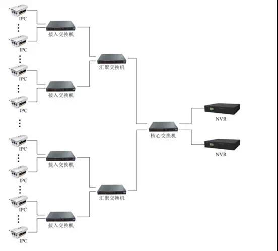 大型網(wǎng)絡組網(wǎng)都會用到三層網(wǎng)絡結(jié)構(gòu),這個在我們?nèi)蹼妚ip群中也有朋友問起過,200個監(jiān)控點位需不需要匯聚交換機? 是需要的,沒有匯聚層交換機做媒介,核心交換機的壓力會很大,會出現(xiàn)網(wǎng)絡堵塞、延遲等情況。